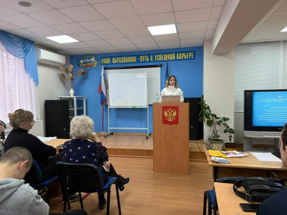 Распространение ВИЧ-инфекции представляет собой серьёзную угрозу для общества. В 2025 году доля заразившихся ВИЧ-инфекцией в возрастной группе 20-29 лет составила 5,3%. Следовательно, профилактическая работа в молодежной среде с целью предотвращения распространения болезни является особенно актуальной. 02.03.2026 года сотрудниками Центра по профилактике и борьбе со СПИД ОГБУЗ «Тамбовская инфекционная клиническая больница» было проведено мероприятие в рамках «Всероссийской Акции «Стоп ВИЧ/СПИД»» для 47 студентов Тамбовского филиала АНО ВО «Российский новый университет». Специалисты прочитали лекцию на тему «Что такое ВИЧ-инфекция?», в ходе которой слушателей проинформировали об основных путях передачи заболевания, способах защиты и профилактики. Участники мероприятия проявляли заинтересованность, задавали уточняющие вопросы.